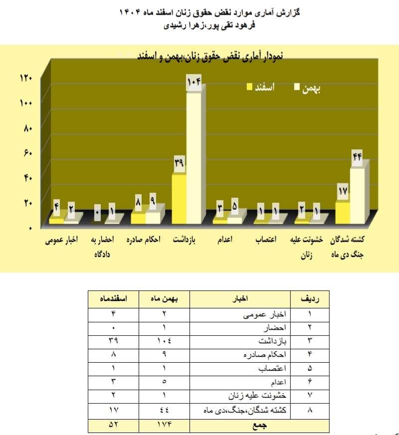 این گزارشات از سایت کمیته دفاع از زنان تهیه شده است و آمار استخراج شده از جمعا ۵۲ خبر استخراج شده که از رسانه های داخلی و خارجی مانند هه نگاو، هرانا، ایرنا،